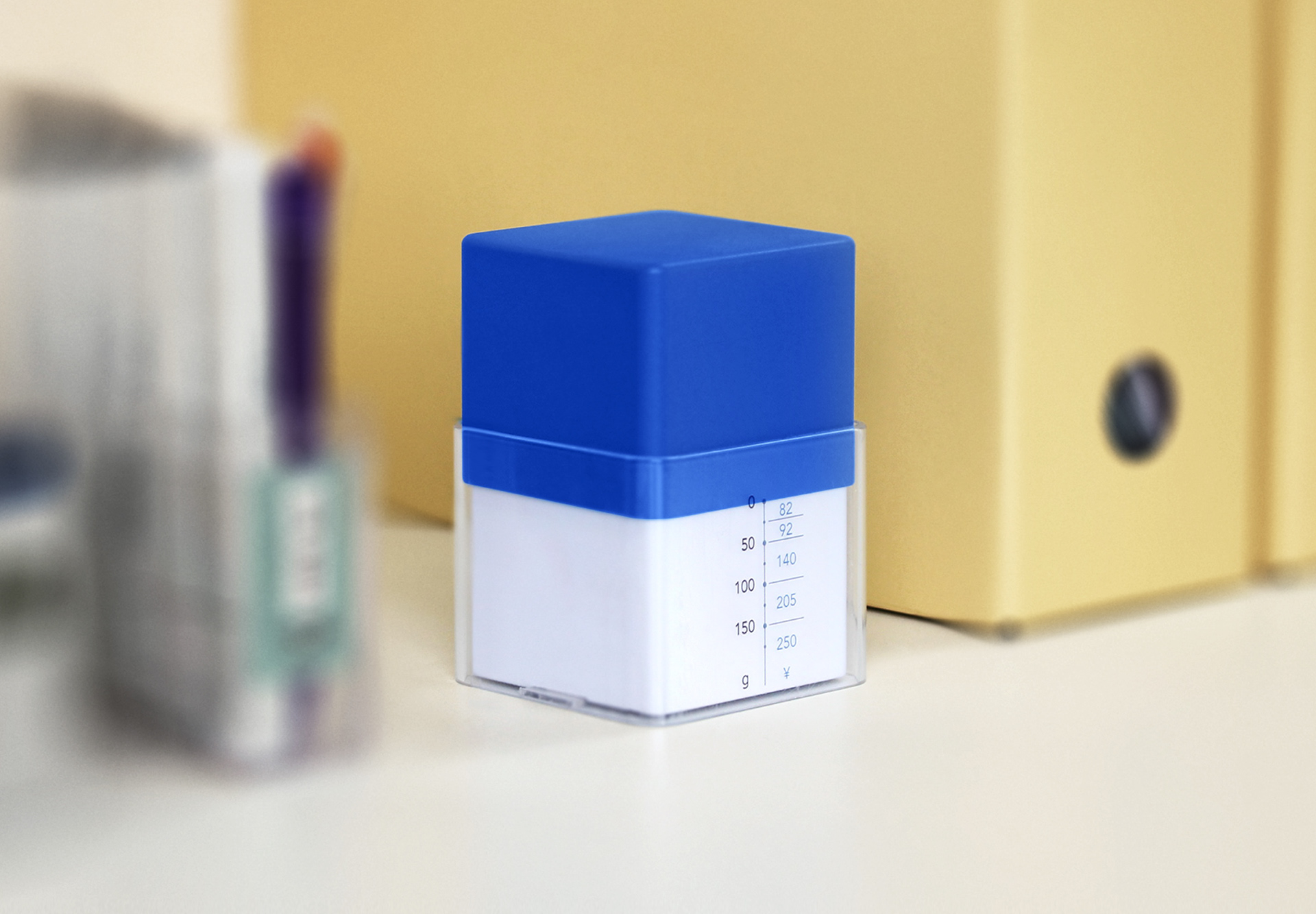 HAKALI is a state-of-the-art letter scale concept that combines a new structure and style. The simple shape created from the movement of the scale is familiar to various environments. By using only the necessary elements to know the postage, we have created an efficient structure and realized clear usability. The upper plate and the pointer are one part. This makes it possible to arrange the letters of the scale, improving the readability of the letters. ---- HAKALI は 新しい構造とスタイルを両立した、より現代的なレタースケールのコンセプトです。 郵便物の重さを測る時の動作から生み出されたシンプルな形状は、様々な環境に溶け込む佇まいを演出。 郵便料金を知る為に必要な要素だけを抽出することで効率的な構造を作り出し、明快なユーザビリティを実現しました。 はかりの上皿と針を一つの部品で構成しています。 これによってめもりの文字を整列させることが可能となり、文字の可読性を向上させています。